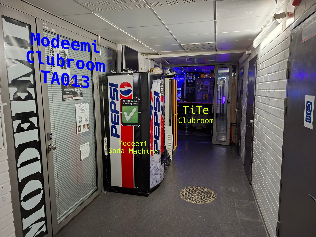 You can check when our clubroom is open at doors.modeemi.fi, a project maintained by our club members, which aggregates information from IoT door opening sensors from different clubrooms. Besides the website, there is also open telegram channel, Hervanta bots which is directly linked into our system.